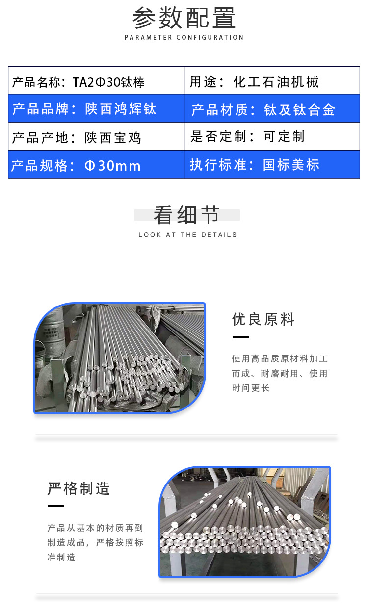 宝鸡厂家批发TA1/TA2钛棒 Φ30mm钛圆棒 规格齐全钛棒 可零切
