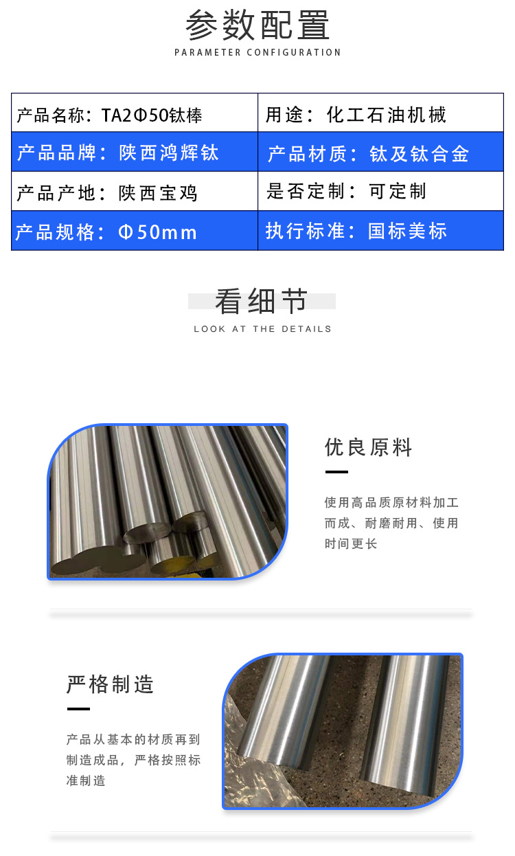TA2Φ50钛棒 TA9 TA10 TC11钛棒 GB/T ASTM/B钛合金棒可定制