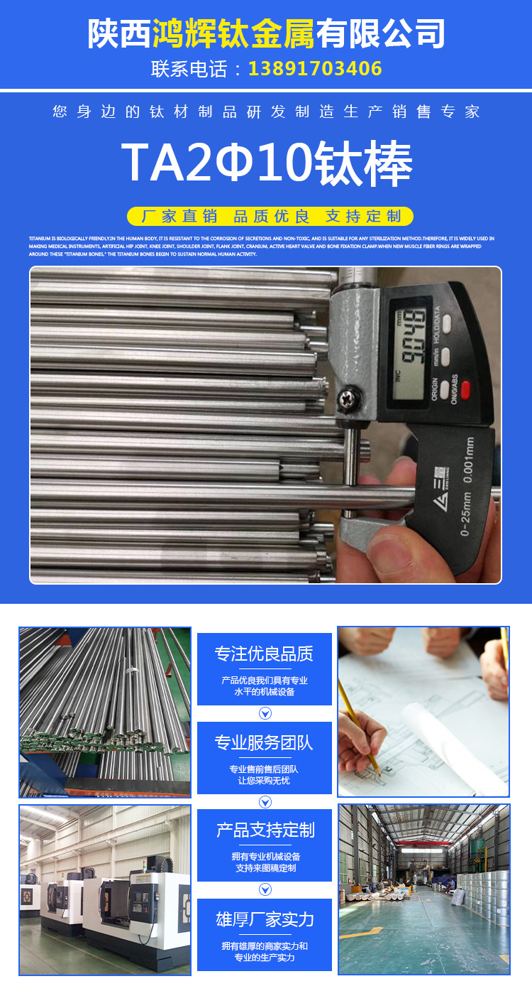 现货钛合金棒材TC4磨光圆纯钛棒TA1TA2实心钛棒零切直径1.0-500mm
